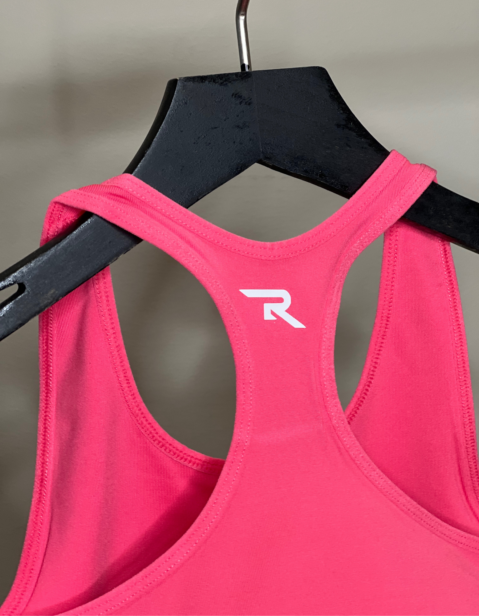 Pink sports bra with holographic Renegade Cheer decals.