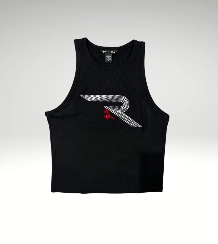Elevate your cheer wardrobe with the new Sparkle R Bling Rhinestone ATHLETA Tank. Crafted for both quality and shine, this dazzling tank features a striking rhinestone design that catches the light beautifully!